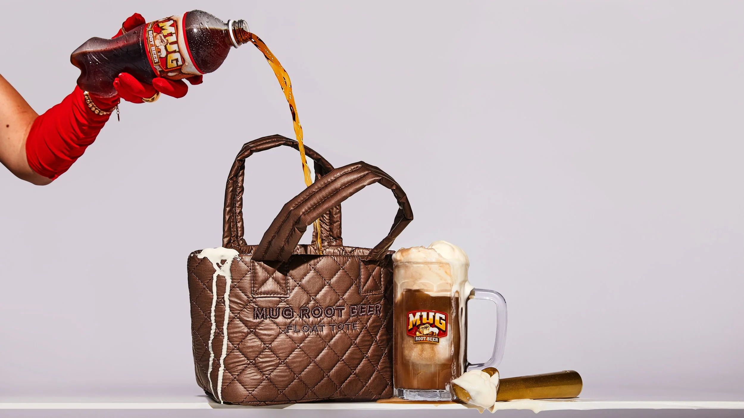 Fashion meets function as DOG solves the portability issue of Root Beer Floats. Behold, a mini tote bag that can hold and dispense a Root Beer Float anytime, anywhere and launched it just in time for NYFW.